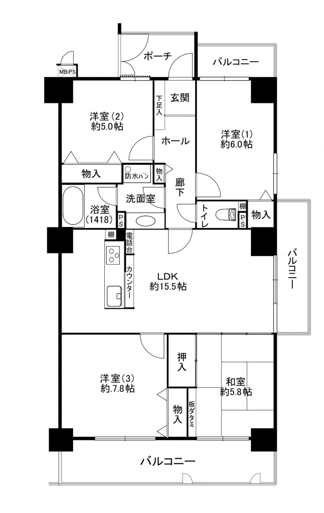 | 専有面積 | 4LDK 壁芯 94.62㎡ バルコニー19.62㎡ ポーチ3.97㎡ |